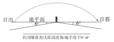 曙暮光又称“晨昏蒙影”,指太阳东升前和西落后的一段时间内,天空呈现的微弱光亮。读下图,完成下列小题。