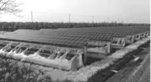 国务院印发的2017年中央一号文件,“实施农村新能源行动,推进光伏发电,逐步扩大农村电力、燃气和清洁型煤供给”被写入其中,我国光伏农业(棚上发电,棚下种粮种菜)得到迅速发展。下图为2018年3月25日拍摄的安徽庐江县光伏农业示范园。据此完成下列各题。