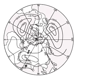 下图为某半球某月海平面等压线分布示意图(单位bPa)”,读下图,回答下列各题。