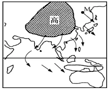 9.该图表示的时间以及M点风向的说法,最有可能的是