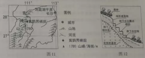 (1)说明紫鹊界梯田地下储水能力强的原因。(6分)