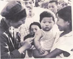 图8-32 解放军某部医务人员为儿童接种疫苗